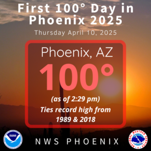 Still don’t care? How about the first 100 degree day in Phoenix, already – a month earlier than usual. That’s a Spring heat wave over the whole U.S. Southwest.