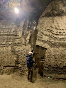 The other form of thaw that is really important and has gotten much more attention is what we call “abrupt thaw”. In the picture to the left you see an ice wedge. Most permafrost contains ice but In some areas there are these massive ice wedges. There is a person in front of the ice wedge just for comparison of the size, how big those ice wedges are. (Woodwell image)